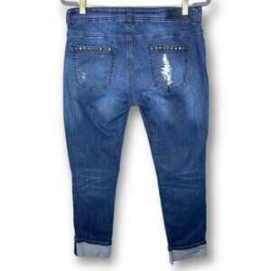 Buffalo David Bitton 28 Dark Wash Studded Cuffed Distressed Boyfriend Jeans $118