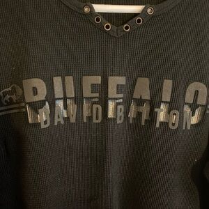 Stylish long sleeve tee. Features Buffalo David Bitton logo. Great looking Buffalo David Bitton Black Long Sleeve Men’s Graphic Waffle Thermal Shirt Medium. In great condition—just a small red mark near the inside tag that isn’t noticeable when wearing.