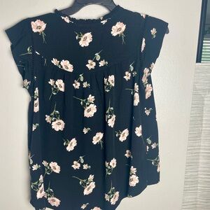 Beautiful floral blouse with fluttery sleeves in good used condition. It does have a few runs that I tried to capture in the pics. Let me know if you have any questions ๐