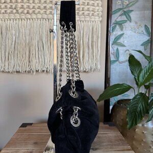 Buffalo David Bitton Black Velvet Silver Chain Strap Squishy Hobo Shoulder Bag