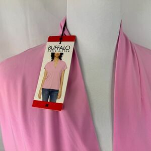 Buffalo David Bitton Blouse Sz M V-Neck Short Sleeve Pink stand up collar