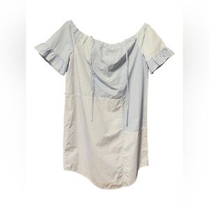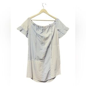 #BuffaloDavidBitton #StripedDress #GinghamStyle #OffTheShoulderDress #SummerStyle #CasualChic #BreathableCotton #ResaleFashion #PoshStyle #BlueAndWhiteDress #NWTFinds