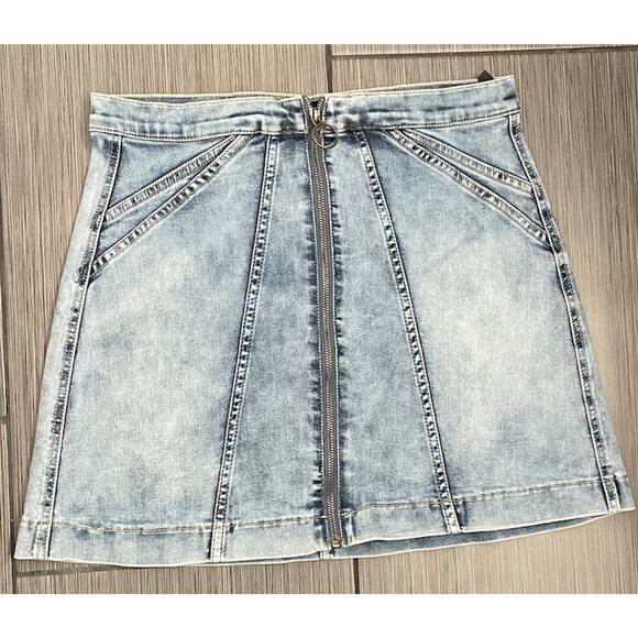Buffalo David Bitton Cadby High Rise Denim Skirt Size 29 Light Wash Zipper Front