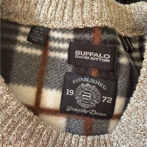 This Buffalo David Bitton sweater is a cozy pullover for men, featuring a crew neck, long sleeves, and fleece lining for added warmth. It has corduroy patches and a logo accent, making it a classic and comfy choice for travel, casual wear, or business occasions.