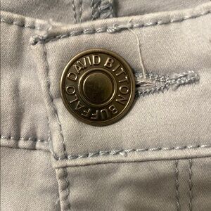 Buffalo David Bitton Daily Mid-Rise Stretch Skinny Jeans in a soft pale blue-gray hue. Crafted from a smooth polished cotton blend with a hint of stretch for all-day comfort and a flattering, slimming fit. Designed with a mid-rise waist, classic five-pocket styling, and ankle-grazing length for a polished, modern silhouette. Perfect transitional piece that pairs effortlessly with tees, blouses, or knits for elevated casual wear.
