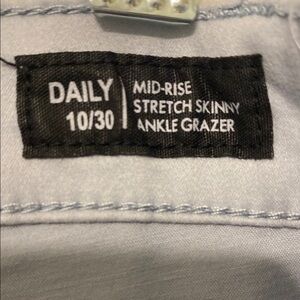 Keywords: Buffalo David Bitton, Daily jeans, mid-rise skinny, stretch denim, polished cotton, pale blue pants, ankle grazer, gray-blue jeans, casual chic, soft cotton blend, modern essentials, polished look, women’s skinny jeans, spring denim, neutral tones, minimal style