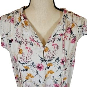 Buffalo David Bitton Floral Blouse, Capped Sleeves, Small