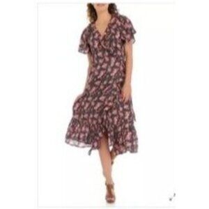 Buffalo David Bitton Floral Maxi Wrap Dress size medium brown cotton new $129