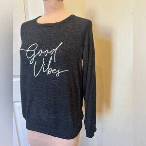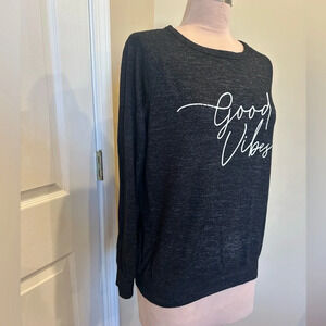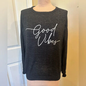 Buffalo David Bitton, Good Vibes sweatshirt, graphic pullover, casual crewneck, motivational top, heather black sweater, weekend lounge wear, positive message shirt, comfy fall top, soft knit pullover