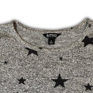 Buffalo David Bitton Gray Star Print Sweater Medium Made In Jordan Soft Knit Wom