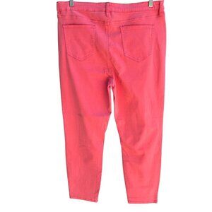 Designed for a flattering fit, these high-rise skinny jeans offer comfort with their soft stretch fabric. The ankle-length cut and vibrant pink color add style.