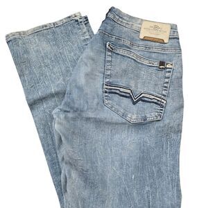 Buffalo David Bitton Driven-X jeans in size 33X34. Light wash denim with a relaxed straight leg fit and comfortable stretch. Classic 5-pocket style. Distressed with some fraying on the hem (see last photo). Pre-owned in good condition, clean with no flaws other than normal wear.