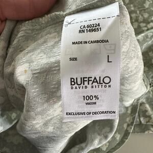 Buffalo David Bitton L Blouse soft floral green white top shirt boho crochet