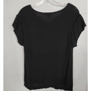 Buffalo David Bitton Ladies Lightweight V-Neck sheer Blouse M black eyelet cut.