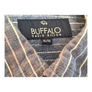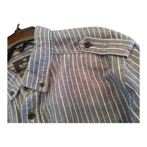 Buffalo David Bitton Linen Cotton Button Down Shirt Epaulets Union Made Blue XL