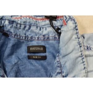 Buffalo David Bitton Men's Blue Acid Wash Slim Fit Pear Snap Button Shirt XXL