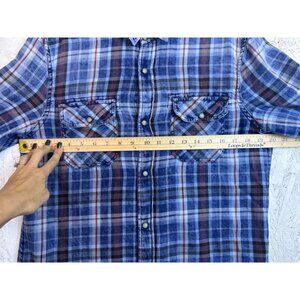 Buffalo David Bitton Men’s L Blue Plaid Long Sleeve Pearl Snap Lightweight