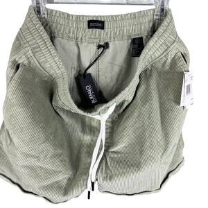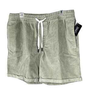 Buffalo David Bitton Haiden Mens L Sage Green Corduroy Shorts Drawstring Cuffed Hem Minimalist 100% Cotton Comfortable Casual Wear Summer Beach