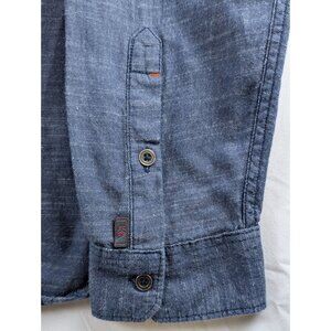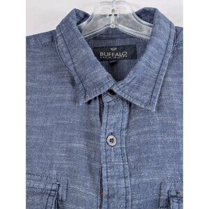 Buffalo David Bitton Mens Large Blue Denim Metal Button Up Long Sleeve Shirt