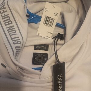 Elevate your casual style with this Buffalo David Bitton hoodie. Light gray color with subtle embossed branding. Comfortable and versatile for everyday wear.