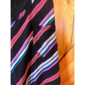 Sleeveless asymmetrical, tunic sheer lined striped pocket size medium pit to pit 19” length 33” on the long part (1624)