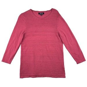 Beautiful Buffalo David Bitton Sweater Sz Large Pink Boho Textured Knitted 3/4 Sleeves Top