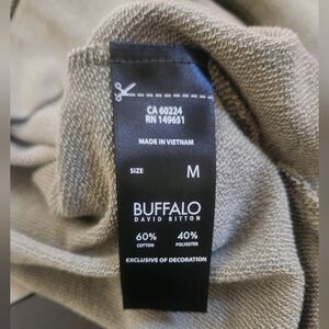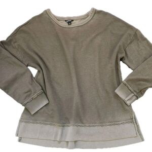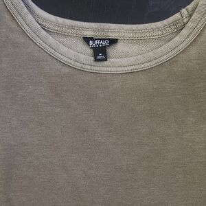 Buffalo David Bitton Sweatshirt Medium Olive Green Vintage Wash Raw Hem Pullover
