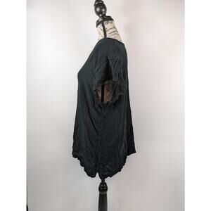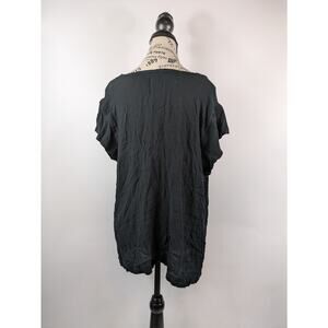Buffalo David Bitton Womens 2XL Blouse Black XXL Slinky V-Neck Cut-Out Short Sl