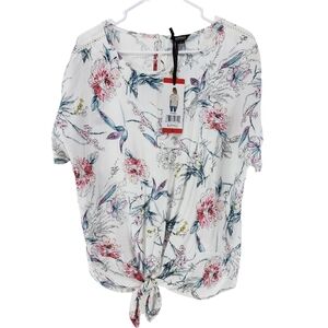 Buffalo David Bitton Women's Floral Print Tie Front Woven Top - M