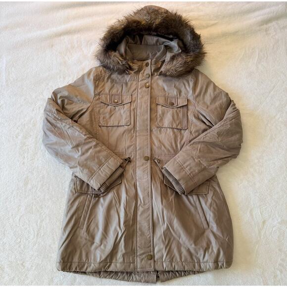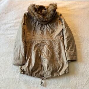 Buffalo David Bitton Womens Jacket Large Brown Parka Faux Fur Hooded Winter