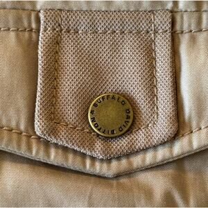 The Buffalo David Bitton Women's Jacket in size Large is a stylish brown parka perfect for the winter season. Made from polyester with a solid pattern, this mid-length jacket features a faux fur hood, long sleeves, and a full zip closure. Ideal for travel and casual occasions, this classic and preppy parka also includes accents like zippers and a regular fit for a comfortable and fashionable look. Designed by the brand Buffalo by David Bitton, this jacket is a must-have for women looking to stay warm and trendy during the colder months