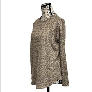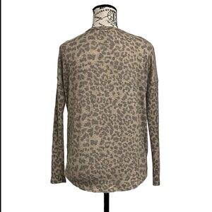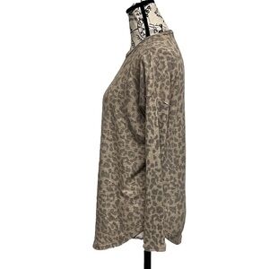 Buffalo David Bitton Womens Ribbed Sleeve Top Leopard Print Size XS Soft Modest