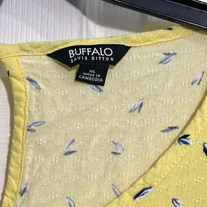Buffalo David Bitton XL yellow floral top with front tie. PTP: 25”. 26” in length. With a raised detail. Preloved.