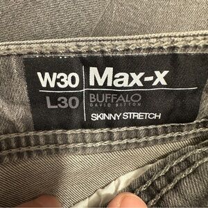 Buffalo David Bitton men's skinny stretch jeans in size 30/30. Gray, 99% cotton, 1% spandex.