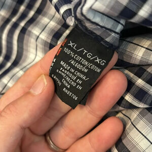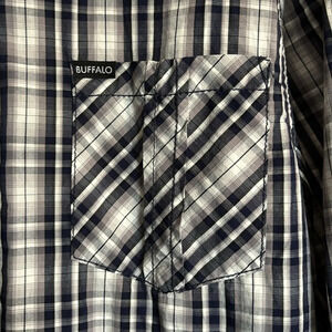 Buffalo David Bitton men’s white and blue plaid long sleeve button down shirt