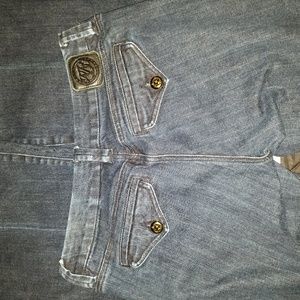 Mid rise. Straight leg. Wide leg. Size 27. All buttons attached. Look brand new. Fold glittery zipper. A slender fit 27