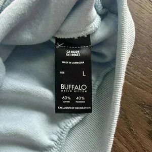 Buffalo David Bitton top. Baby blue in color. Women’s size large. Shoulder to hem measures approximately 23.5”. Armpit to armpit measures approximately 22”. Great condition! Very cute and comfortable top.