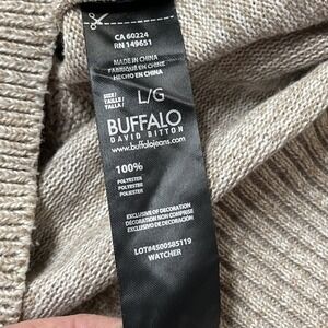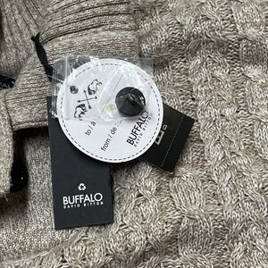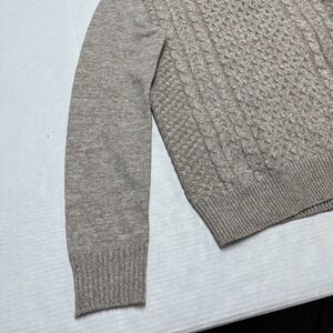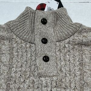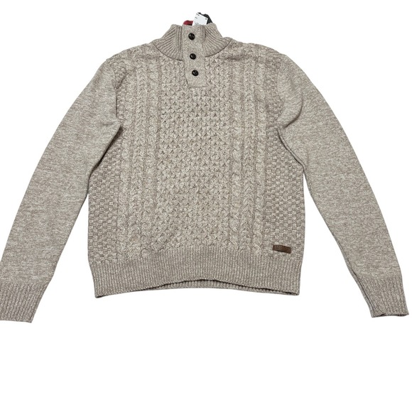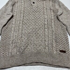 Buffalo David Britton Sweater Mens L Tan Cable Knit Mock Neck 1/4 Button Preppy