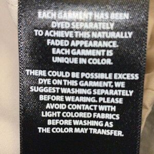 As tags indicate, there are some minor hue changes in dye throughout the jacket. These are NOT stains but part of the manufacturer process and are consistent with cotton.