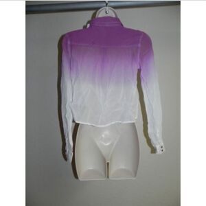 Buffalo David Bitton Blouse White Purple Mippy XS Button Front WT1682 NWT $69