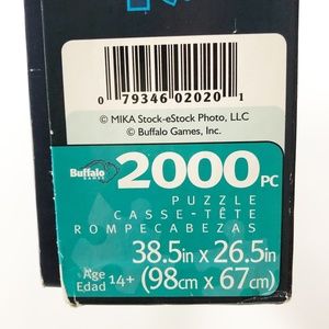 Includes a fold out poster as an assembly guide. Finished puzzle is 38.5"x26.5". I have not assembled the puzzle and do not know if there are missing pieces. The individual jigsaw pieces are in great shape.