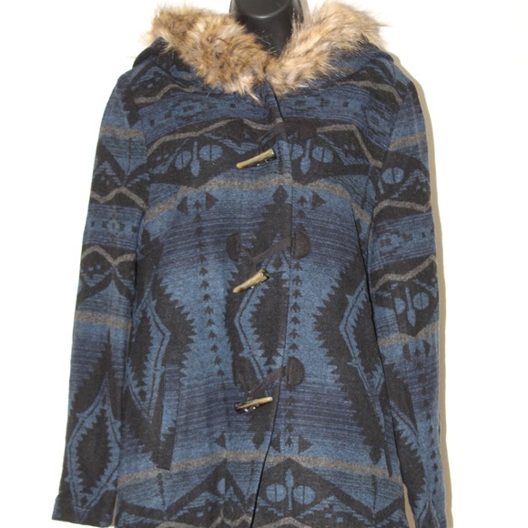 Buffalo Jackson Trading Co. Fur Hooded Fleece Jacket w/ Drawstring. Printed. Pockets. Snap and Button Closure. Lined.