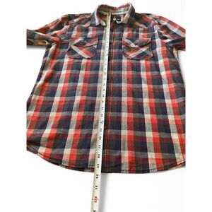 Buffalo Jeans Men’s Shirt L Cotton Red Plaid Long Sleeve Button Up Excellent Con