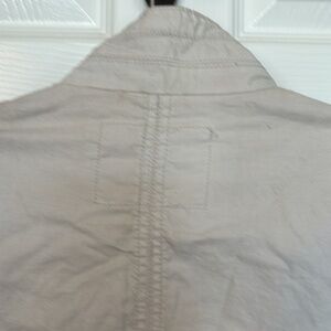 This amazing jacket is 100% cotton and lightweight, yet durable. It is quality made and looks terrific on, making a style statement as you go to work and run errands. The PTP is 20”. The length is 29”. The sleeves are 24”. This jacket comes from a smoke and pet free environment. Thanks for looking and ask any questions!