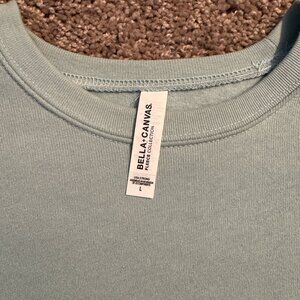 Ultra-soft cropped sweatshirt from Bella + Canvas in a muted sage green. Features a minimalistic embroidered buffalo logo and cozy fleece interior. Relaxed drop-shoulder fit with ribbed cuffs for laid-back comfort.