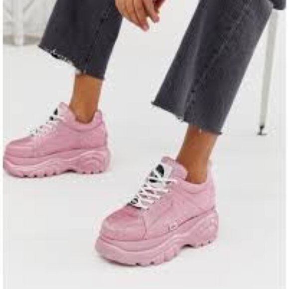 Buffalo London 1339-14 2.0 Women's Lace Up Vegan Patent Platform Trainers In Pink Rose Size US 9 .SOLD OUT!