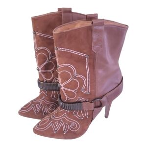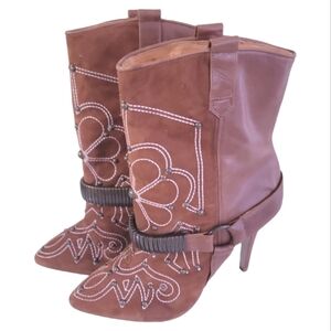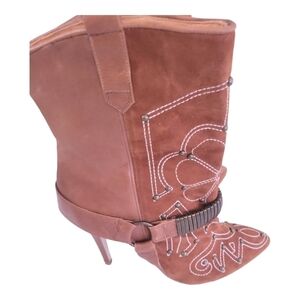 Buffalo London Countrycare Saddle Tan Leather Suede Studded Stiletto Ankle Boot
