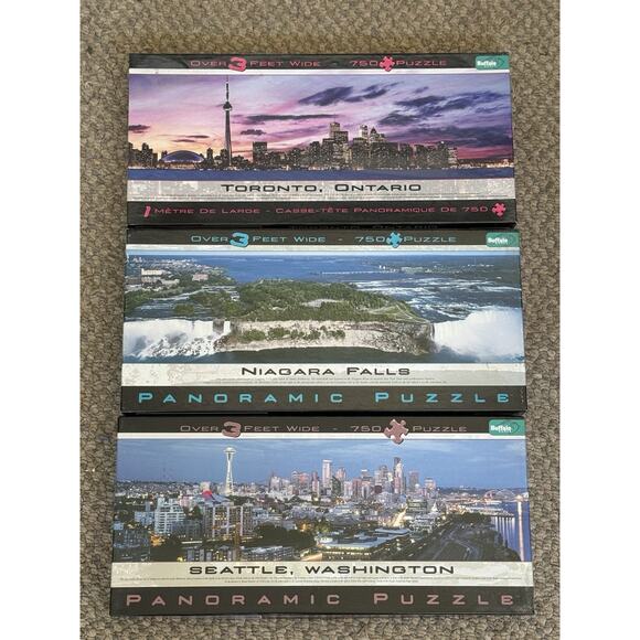 Buffalo Lot of 3 Panoramic Puzzles 750 Piece Toronto, Seattle, & Niagara Falls
