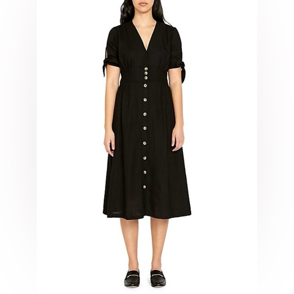 Buffalo Mariposa Tied V-Neck Button-Front Midi Dress NWT