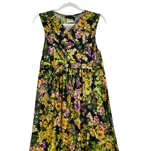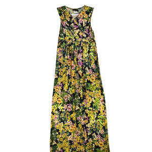Buffalo Maxi Dress Womens XL Sleeveless Black Yellow Floral Stretch Slinky Boho